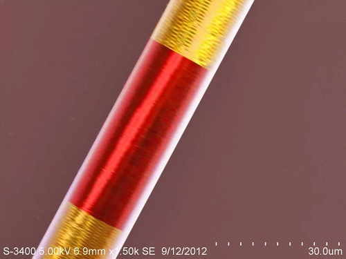 1500倍掃描電子顯微鏡下,玻璃纖維的單絲形態(tài),呈圓柱形,猶如一根頂天立地的如意金箍棒。