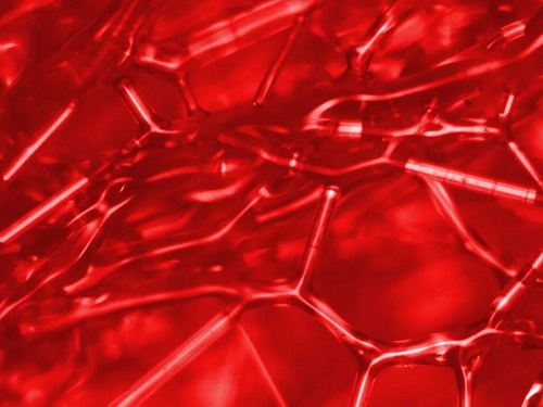 偏光顯微鏡下,玻璃纖維高溫處理后相互聯(lián)接形成網絡的形態(tài),仿佛人體中涌動的血管系統(tǒng)。